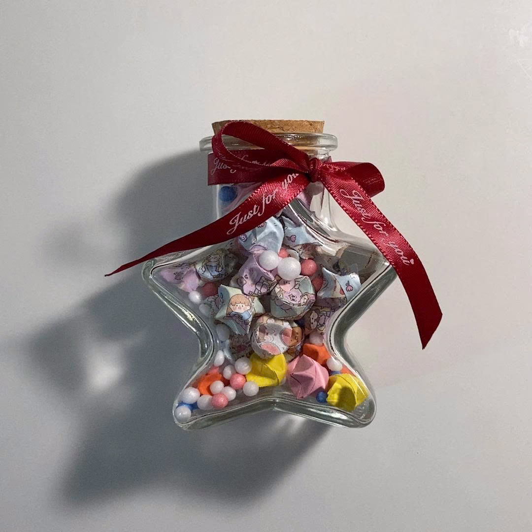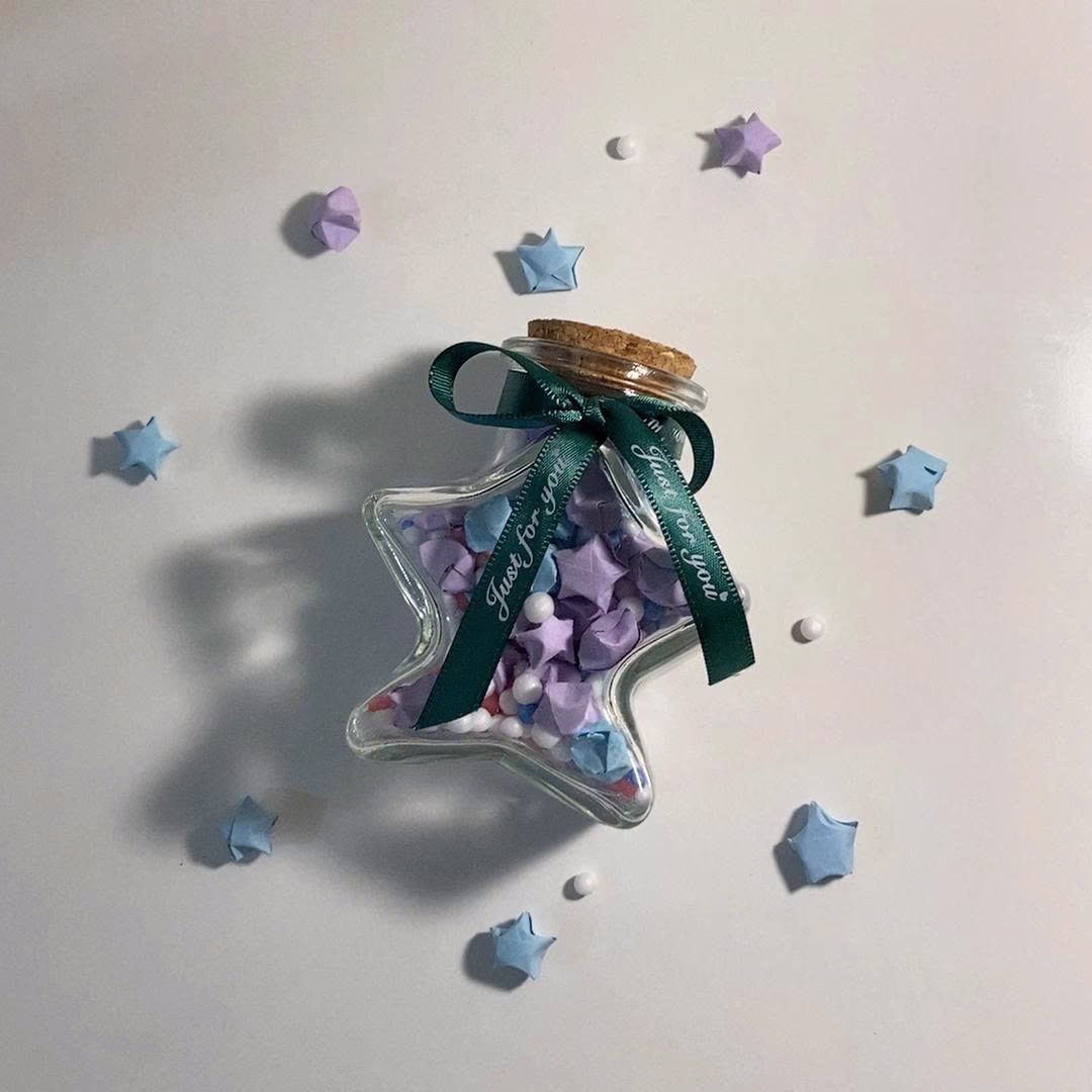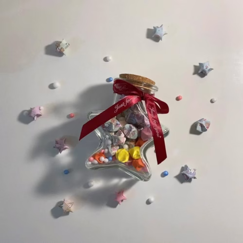 Hũ Sao Ngôi Sao là món quà tuyệt vời mang lại may mắn và niềm vui cho người nhận. Mỗi ngôi sao giấy bên trong hũ đều được gấp thủ công một cách tỉ mỉ, tạo thành những món đồ trang trí độc đáo, vừa xinh xắn lại đầy ý nghĩa.